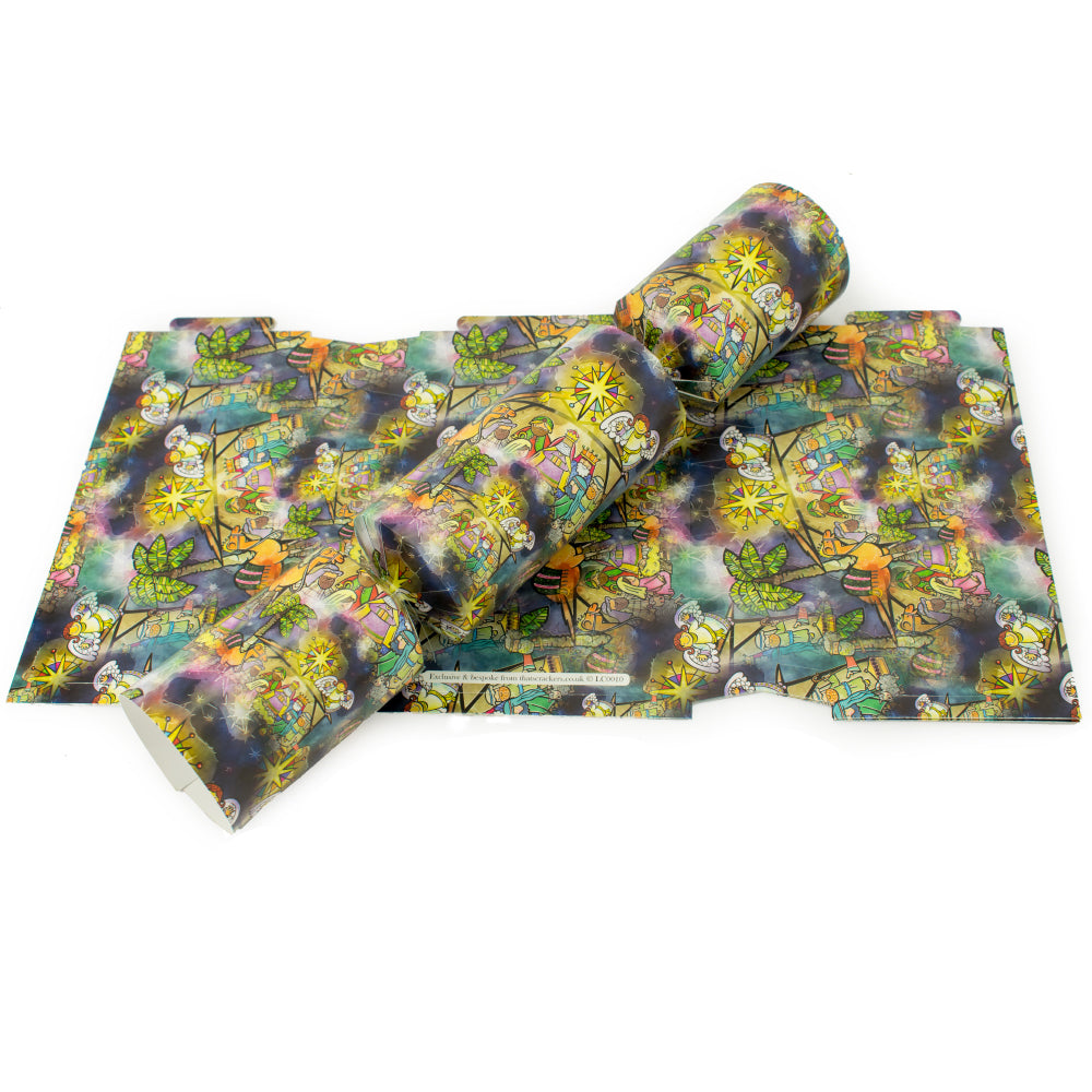 Our crackers are all designed, printed and packed in house, in the UK, on best quality 300 micron board. All of our printed boards, hats, jokes and snappy strips are fully recyclable.