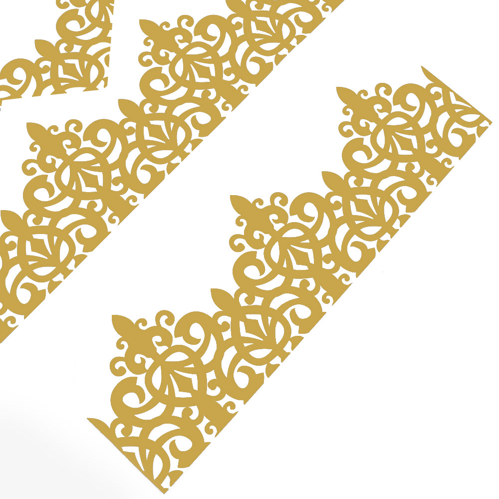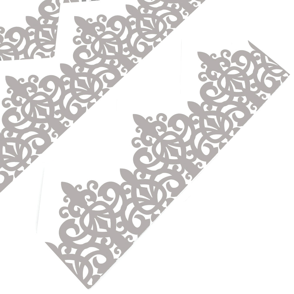 Adjustable paper hats for cracker making projects in a printed filigree design.