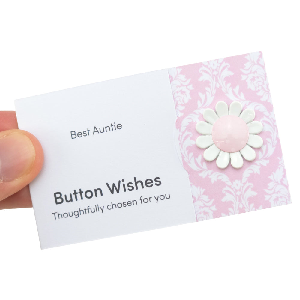 Best Auntie | Pink Daisy | Button Wishes Sew On Token | Cracker Filler