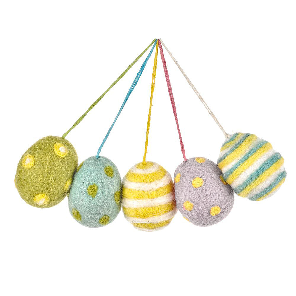 5 Hand Felted Easter Eggs | Hanging Easter Tree Decoration | Fairtrade Felt