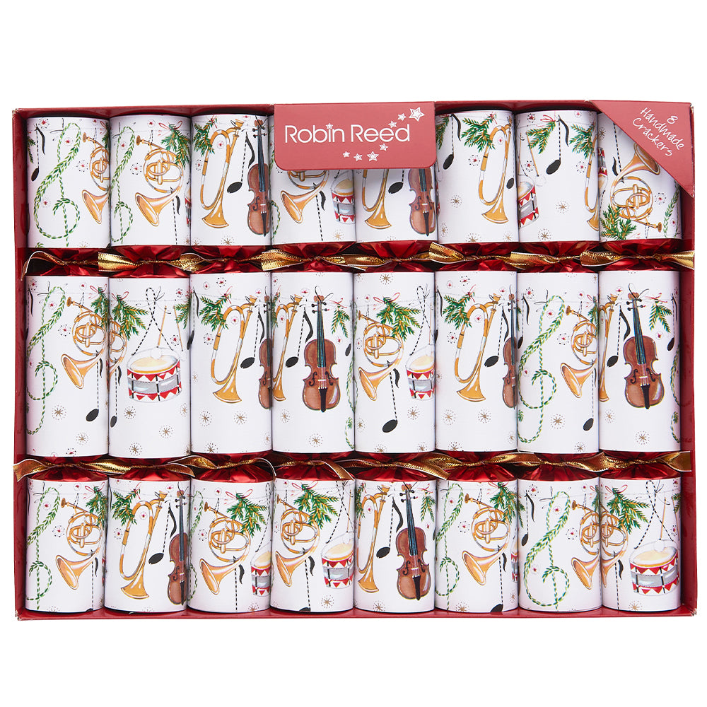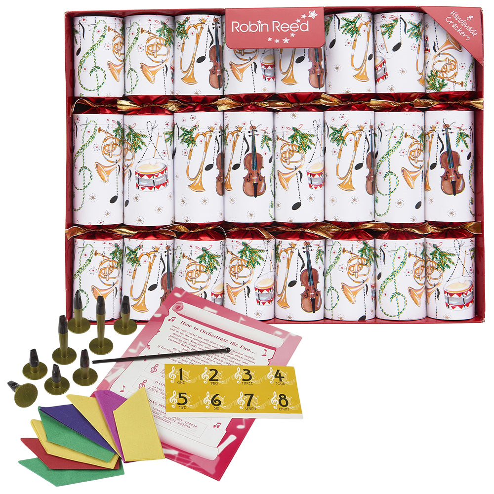 8 Medium Christmas Musical Crackers | With Whistles & Music Sheets | Ready Made