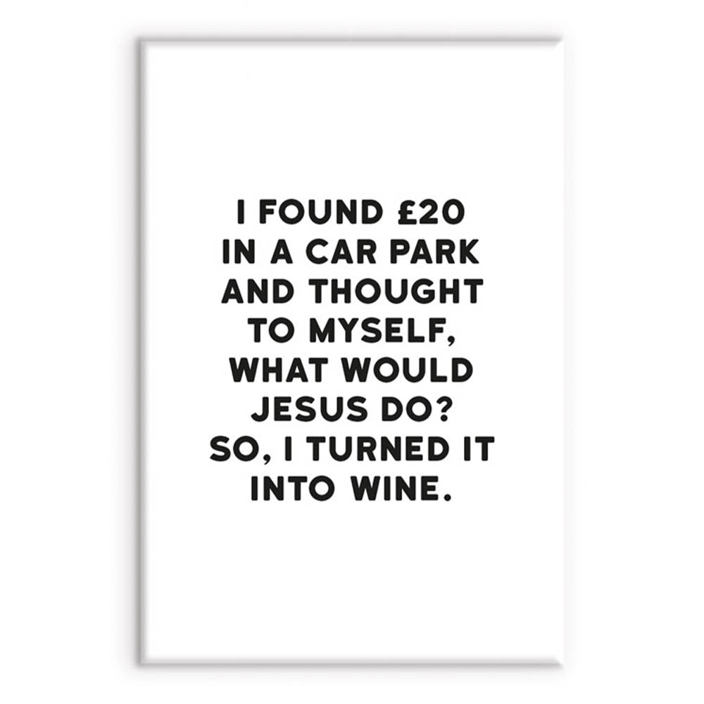 I found £20 in a car park and thought to myself, what would Jesus do? So, I turned it into wine.