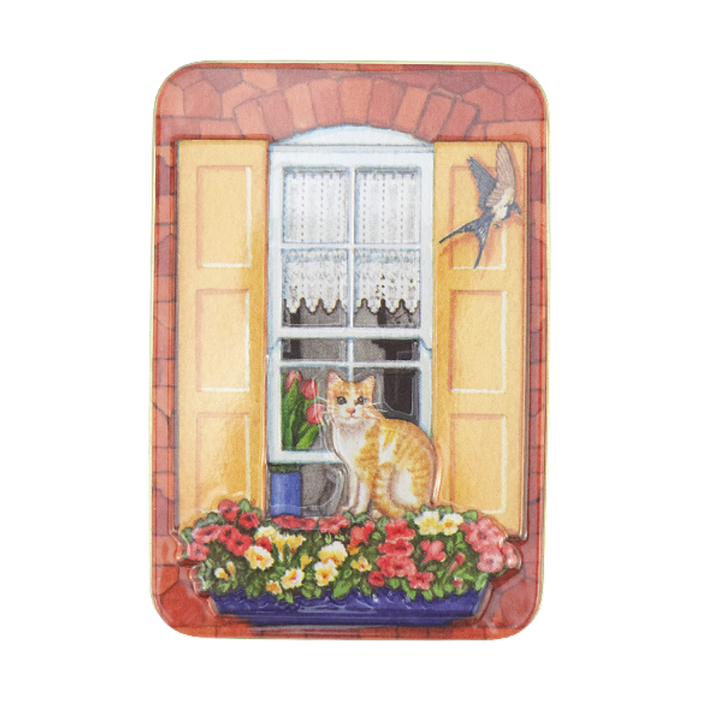 Cute little tins, ready to fill, featuring cats sat in window boxes.