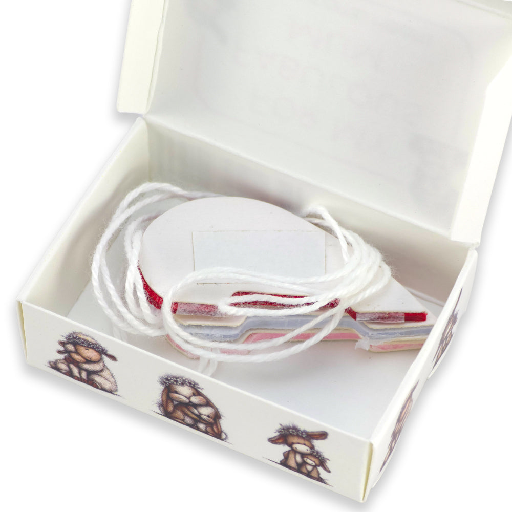 The hearts are 4cm tall and are contained in a little matchbox sized box.