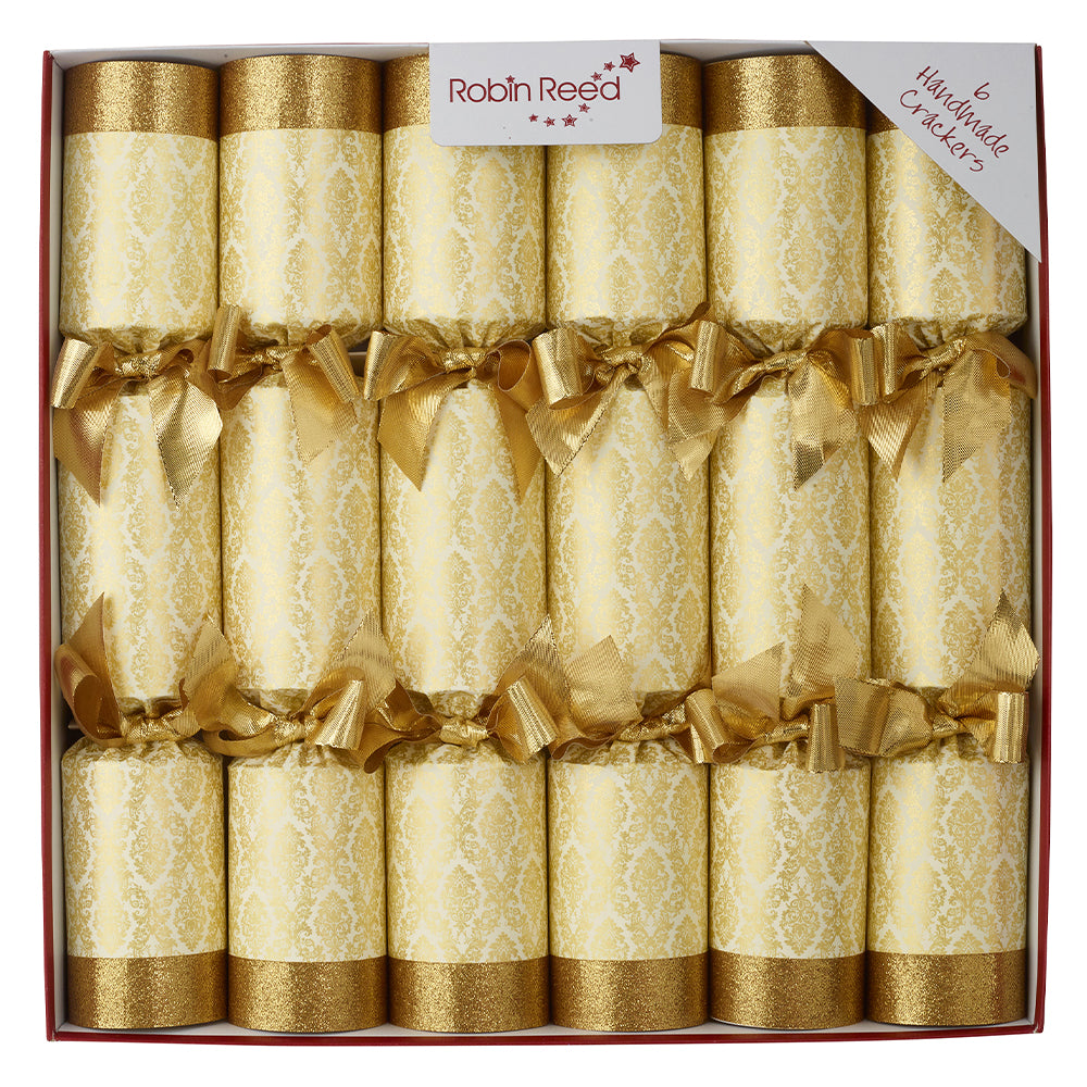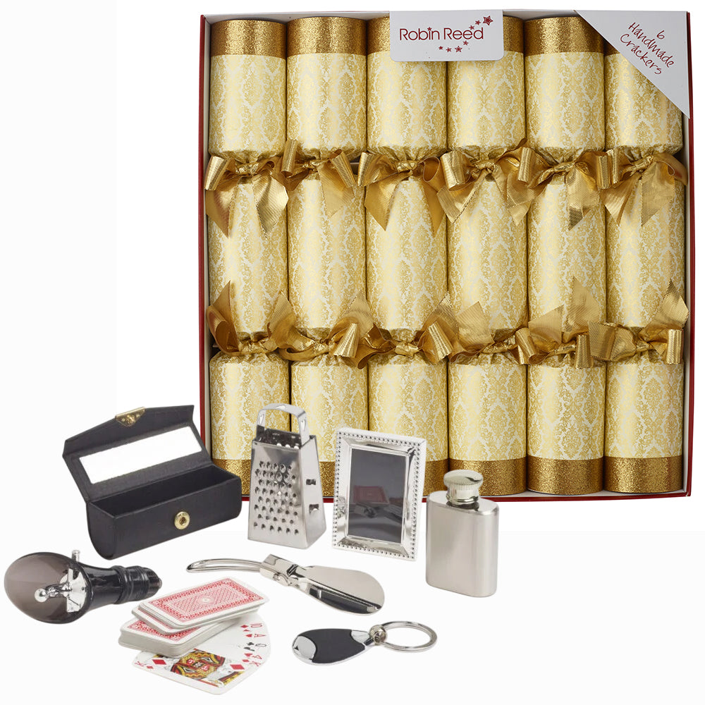 Gold Damask | 6 Large Luxury Christmas Crackers | Plastic Free Metal Gifts