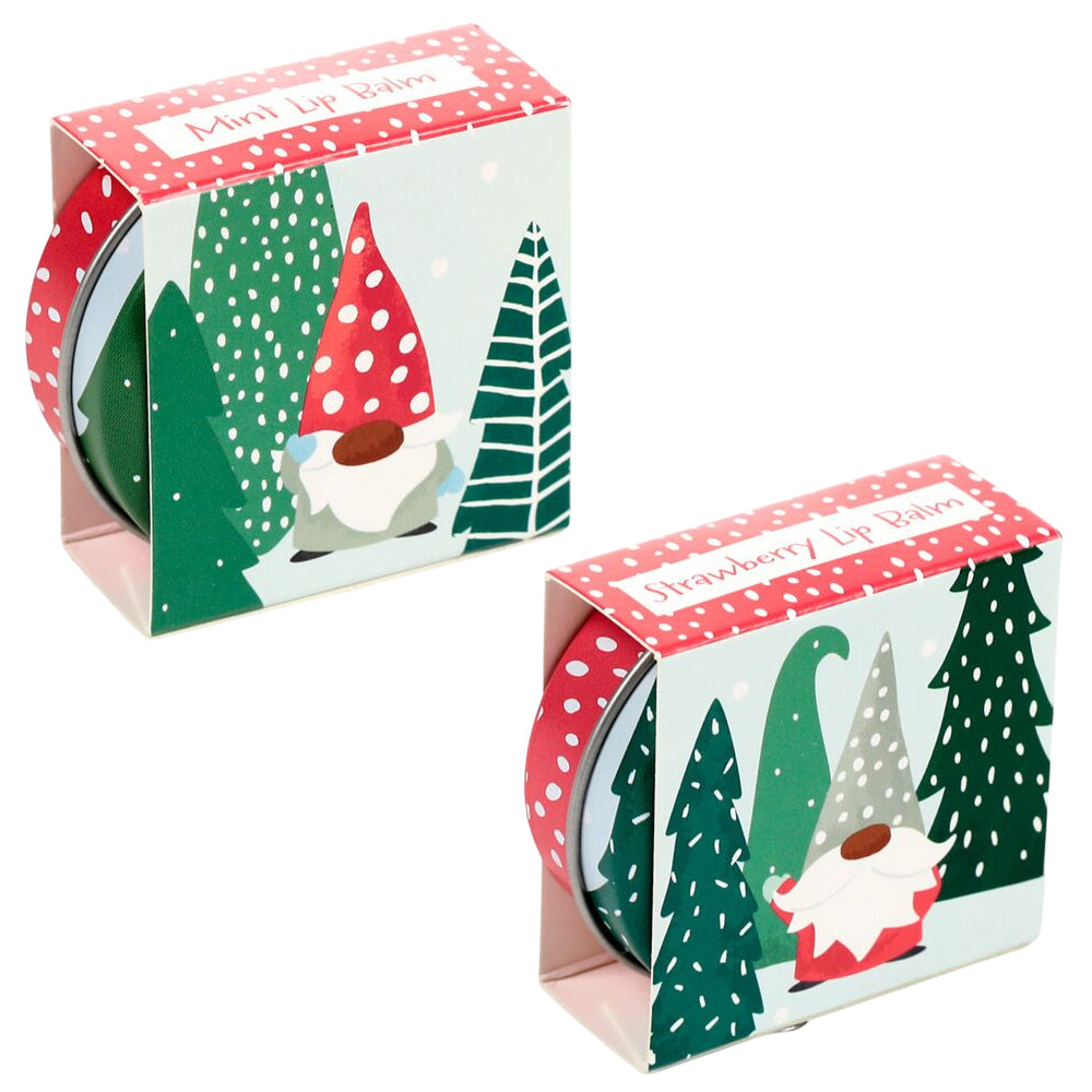 Lip balm in a festive gonk themed tin, with card presentation wrap.