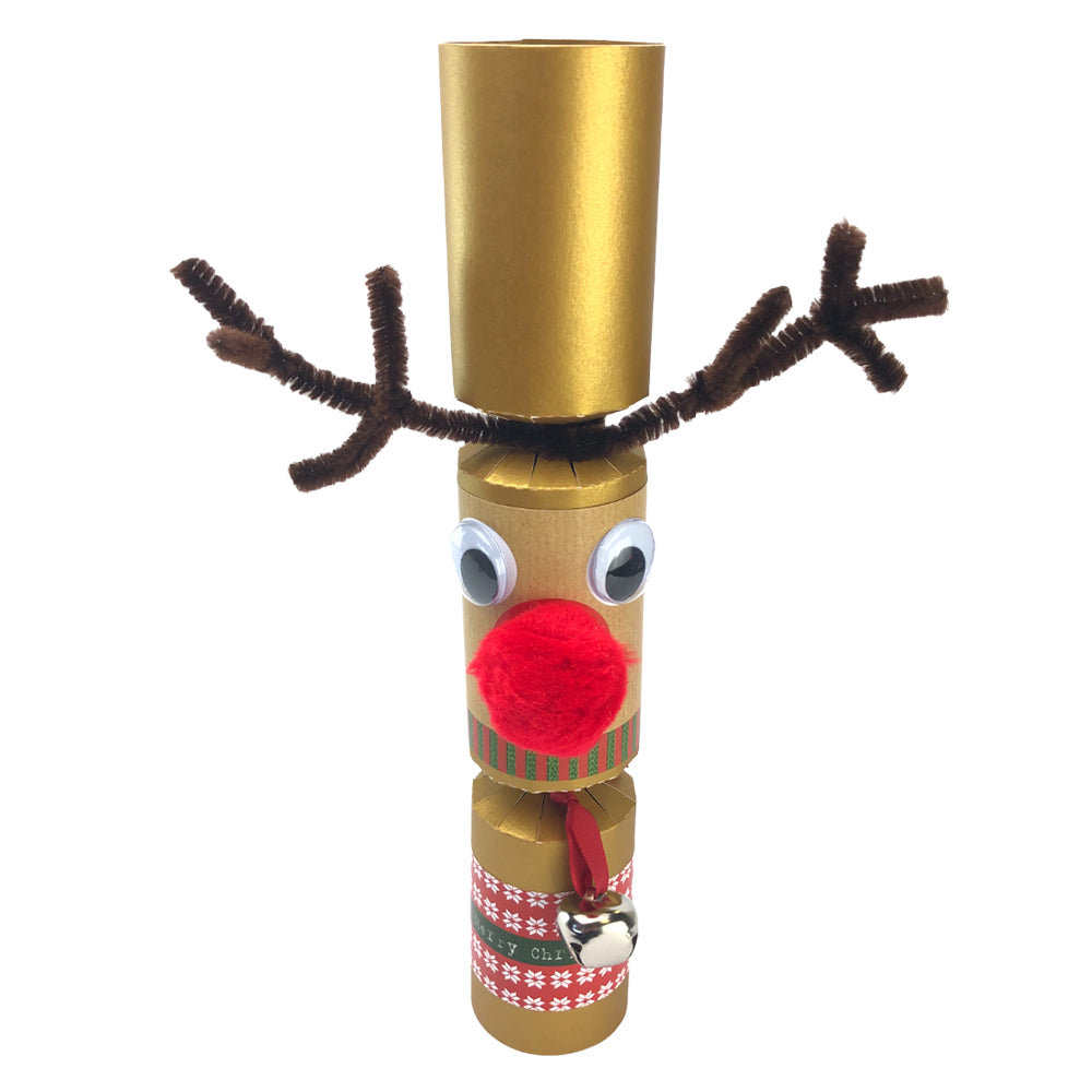 There are a variety of kits using the Rudolph design. Some have coloured crackers with the faces on a separate wrap and some feature fully printed crackers. Some have foam antlers and some have pipe cleaner antlers. Some also have wobbly eyes, pom pom noses and bells. They are designed to stand up but please note, putting heavy items inside will mean they may not stand up. They still look great laying down though!