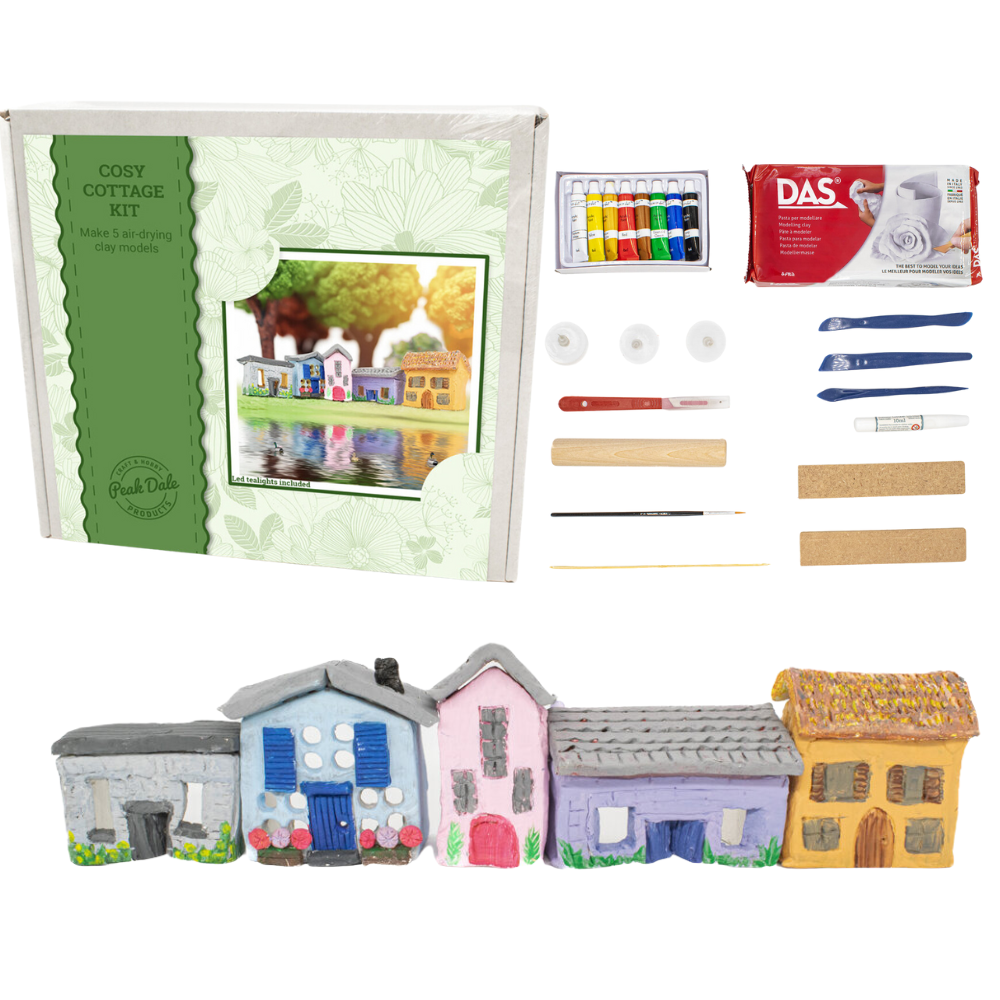 Cosy Cottages | Airdry Clay Modelling Kit | Makes 5 with LED Lights